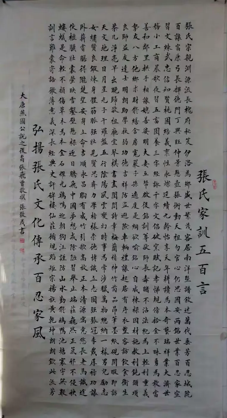 十多年前,北京文化机构邀请我写家风家训,我就写了“张氏家训五百言',平时很多外地张姓家人电话我问一些内容的含义,我就讲给他们,自己写文章有个毛病,不爱注释,就是写了以后,放过去,但自己喜欢辞赋或古文,以为大家都能看明白,实际不是。我把AI释文放下面,大家欣赏!